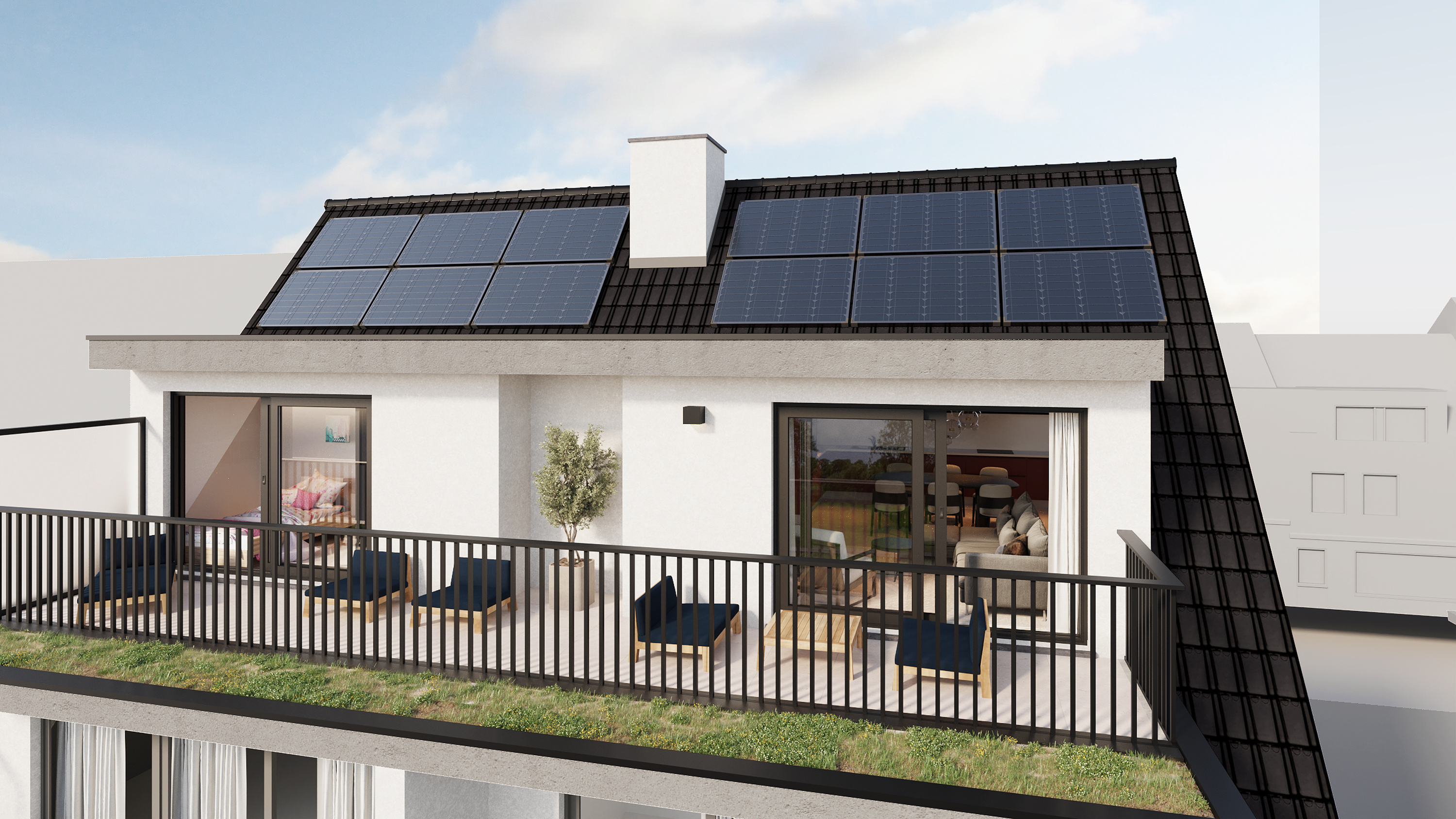 Luchtdichtheid, oriëntatie, isolatie en beglazing maar ook technieken en zonnepanelen zorgen ervoor dat elk appartement E60 haalt. Dit Epeil staat gelijk met een label A in de EPC-berekening.